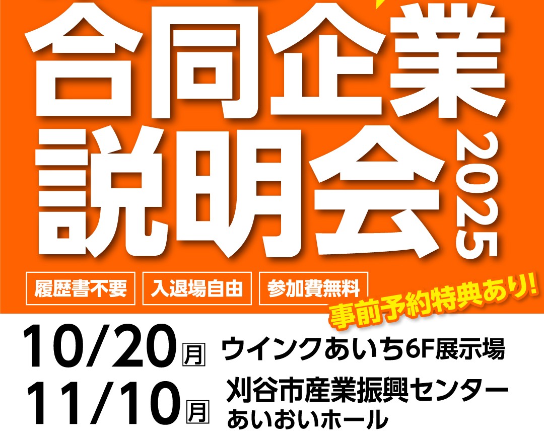 11/10(月)【刈谷】に、愛知県主催「あいち合同企業説明会」を開催します!