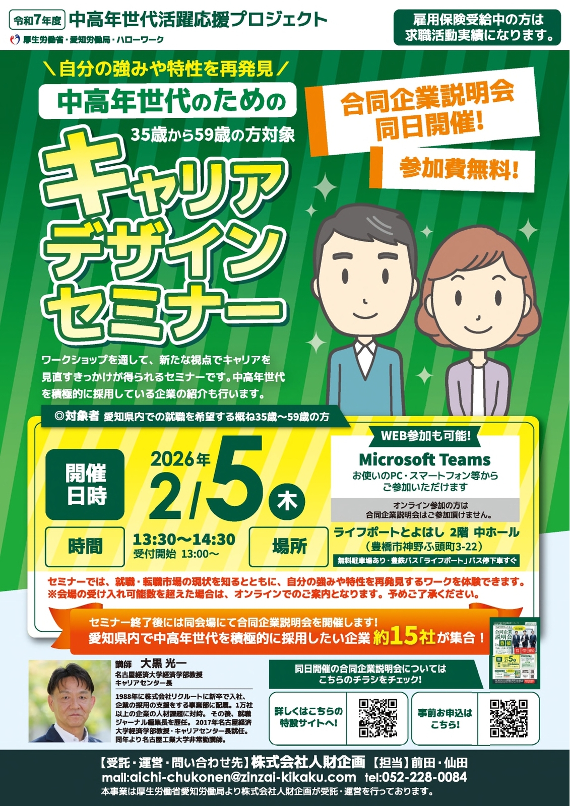 【概ね60歳以上の方対象】 シニアのための就職支援フェアを2月5日(木)に岡崎ハローワークで開催します!