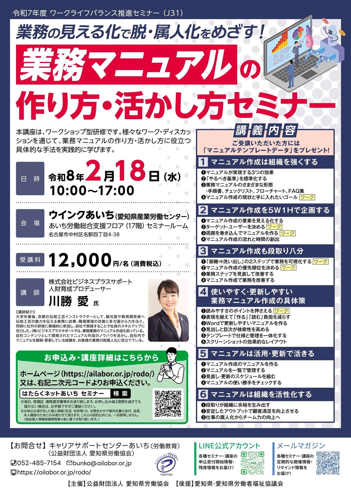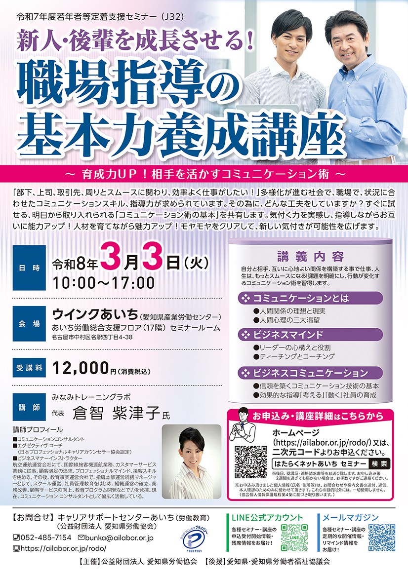 愛知県では、働く意欲のある高年齢者がその能力を十分に発揮し、働き続けられる環境を整備するため、高年齢従業員が活躍する企業の事例発表等を通じて、高年齢従業員の更なる戦力化に向けた方策などを学ぶことができるセミナーを開催しています。【令和7年度の開催は終了しました】