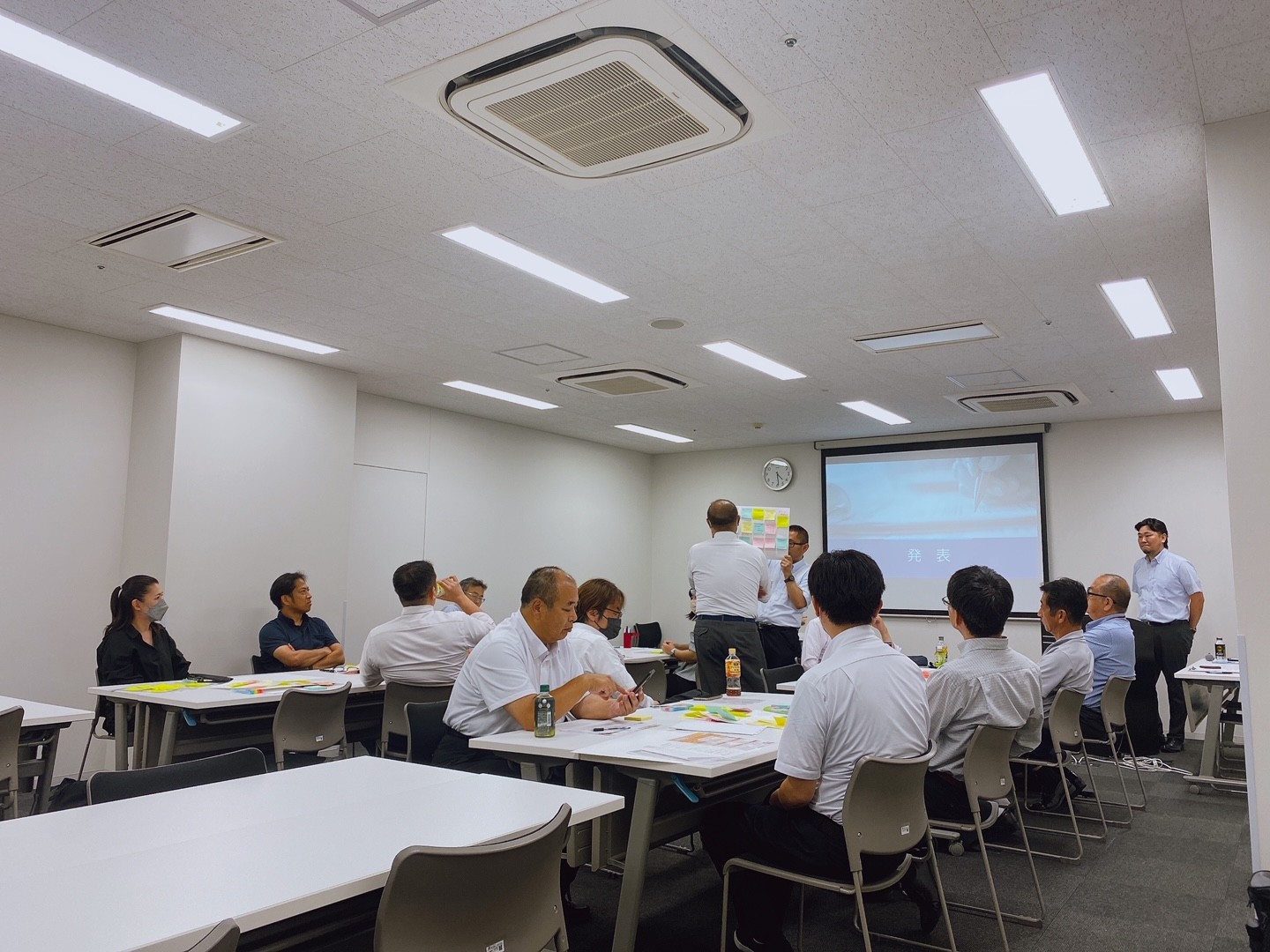 KJ法を用いて、各企業の抱える課題を書き出し、グループ内で改善すべき課題の洗い出しを行い、解決方法について議論しました。