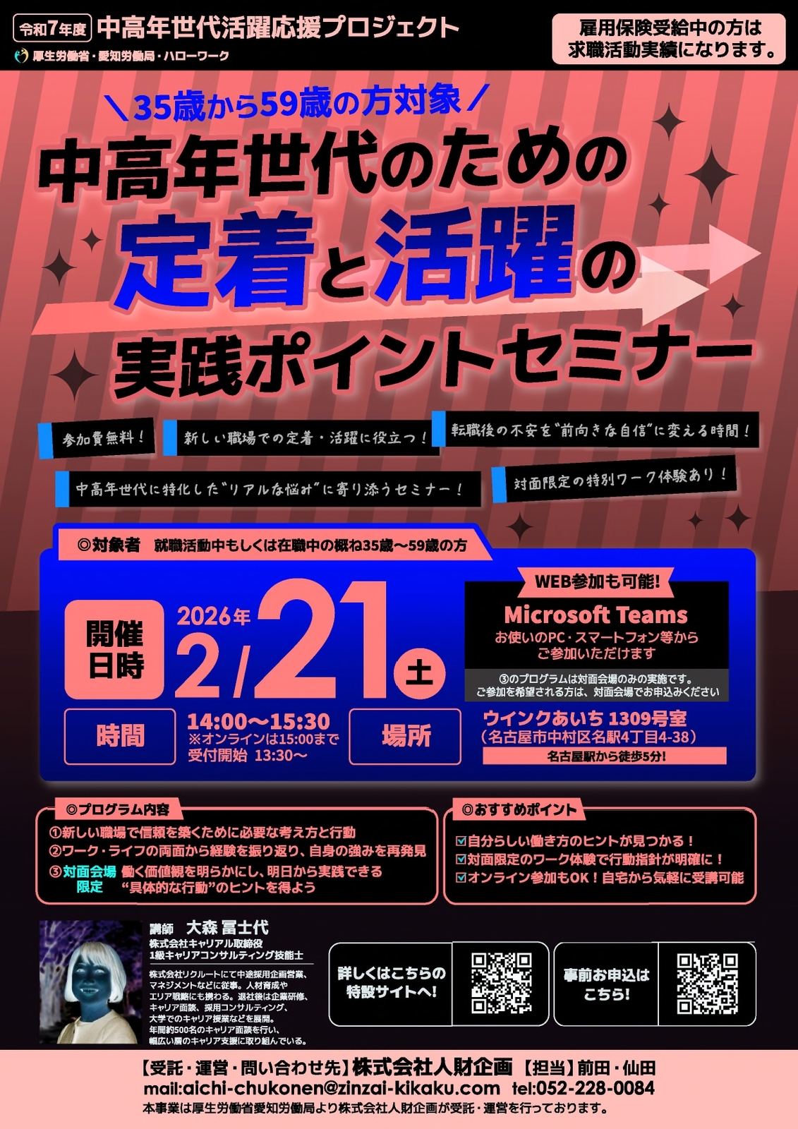 2025年12月18日35歳から59歳の方対象 中高年世代のための定着と活躍のための実践ポイントセミナー